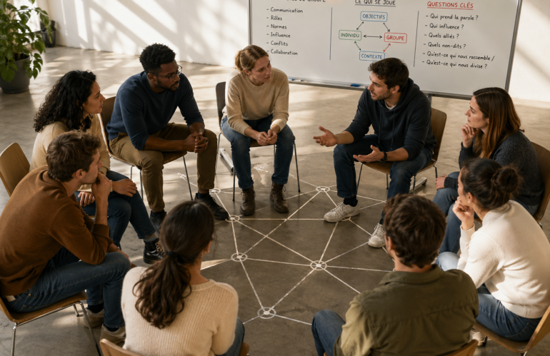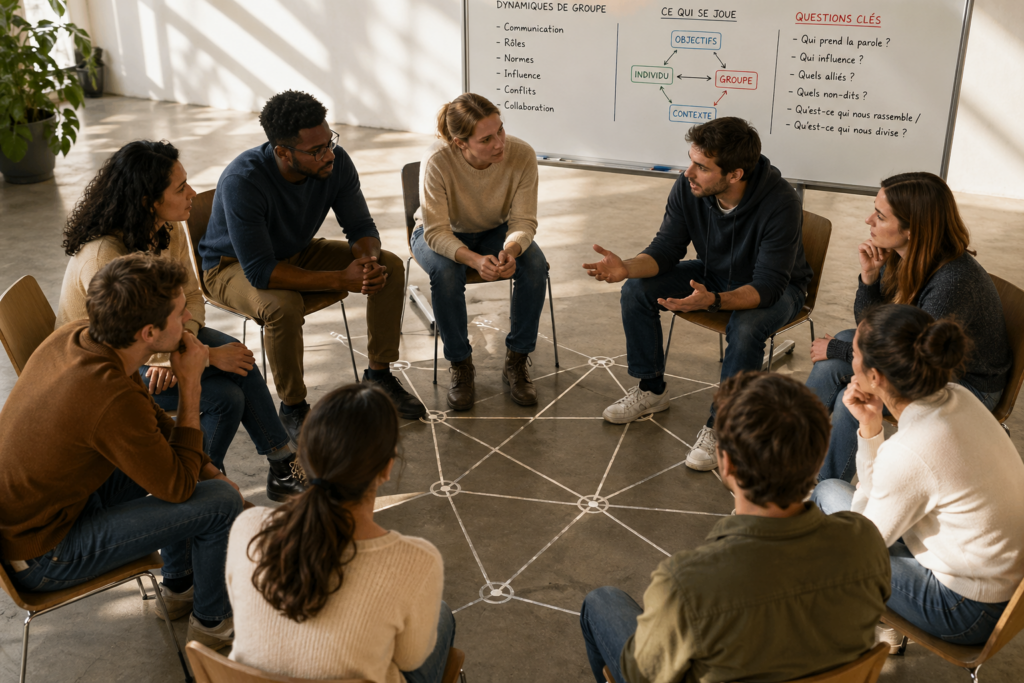 Cela met en évidence un point souvent sous-estimé : les dynamiques de groupe ne se transforment pas uniquement par la compréhension. Elles évoluent lorsque le groupe peut se confronter, dans l’expérience, à ce qui se joue réellement entre ses membres.